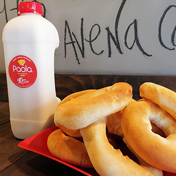 Diez pandebonos calienticos acompañados de un litro de avena casera fría. El desayuno o la merienda que sabe a tradición caleña.
