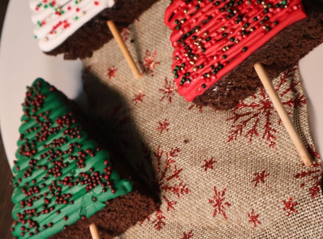 Brownies de chocolate decorados en forma de arbolito, suaves y llenos de sabor navideño.