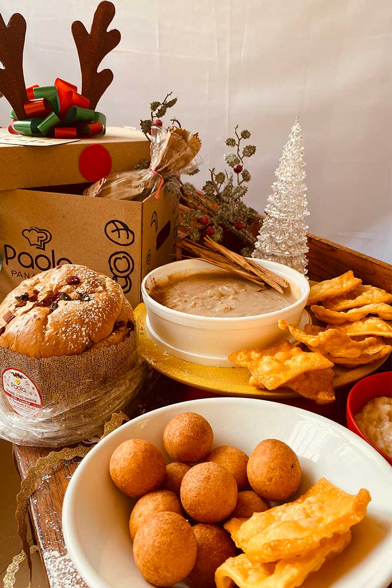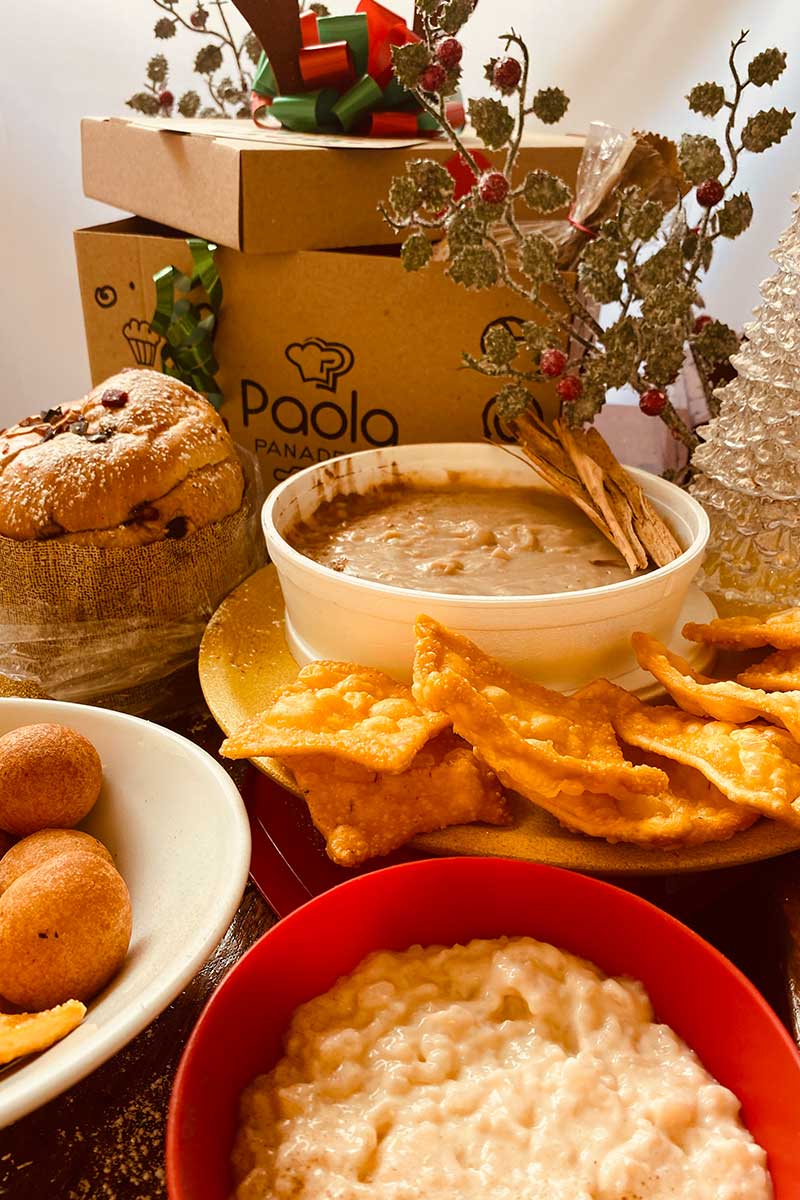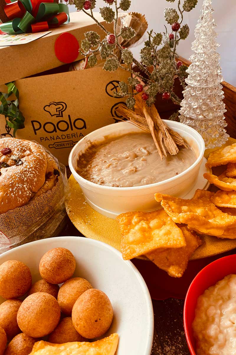 En Panaderia Paola Roosevelt te ofrecemos Buñuelos, Natilla, Hojaldras, Arroz de Leche, Platicos Navideños, Empanadas, Aborrajados, Marranitas, Galletas Navideñas, Torta envinada, Panetones.... y Mucho Más!