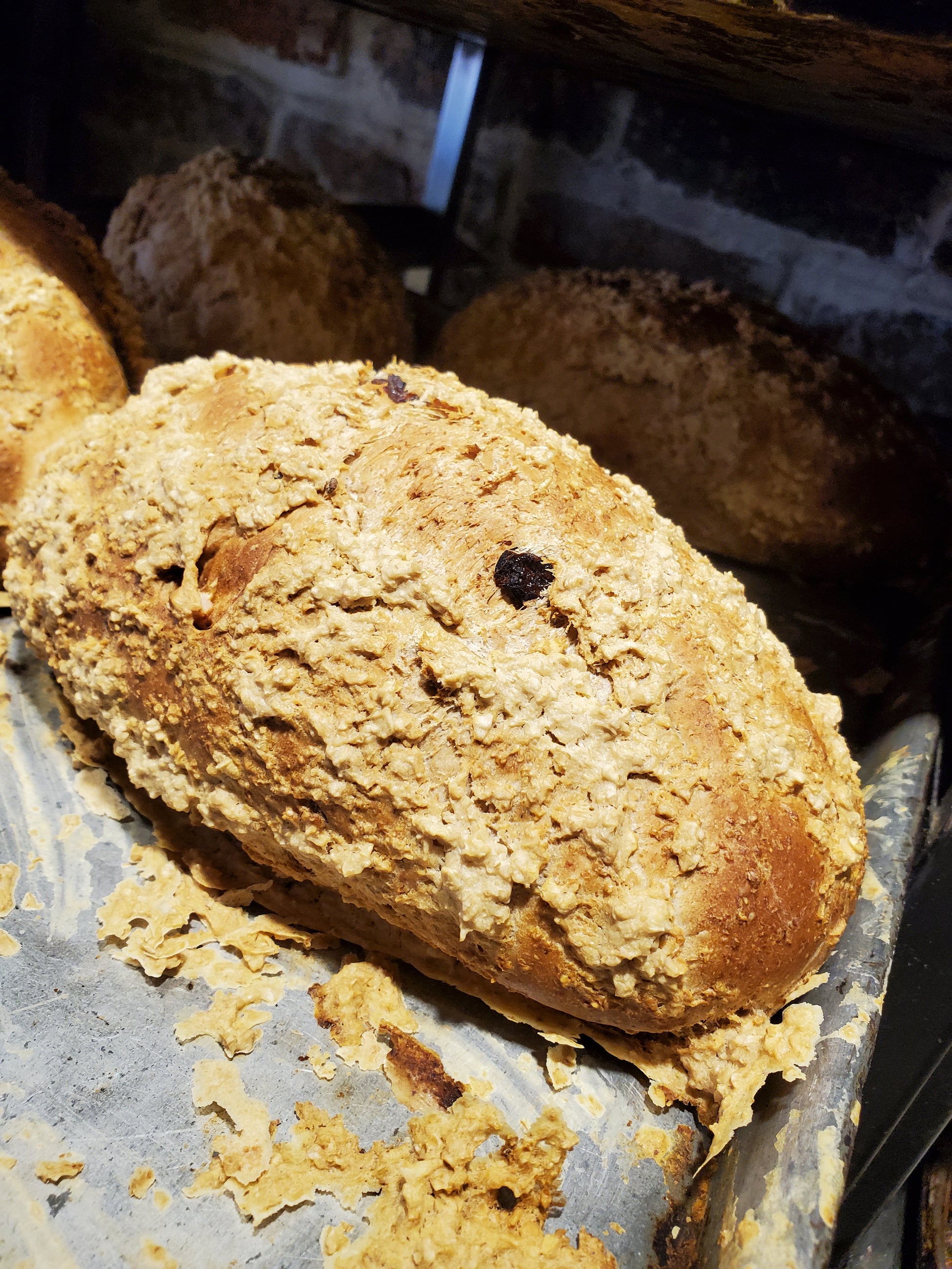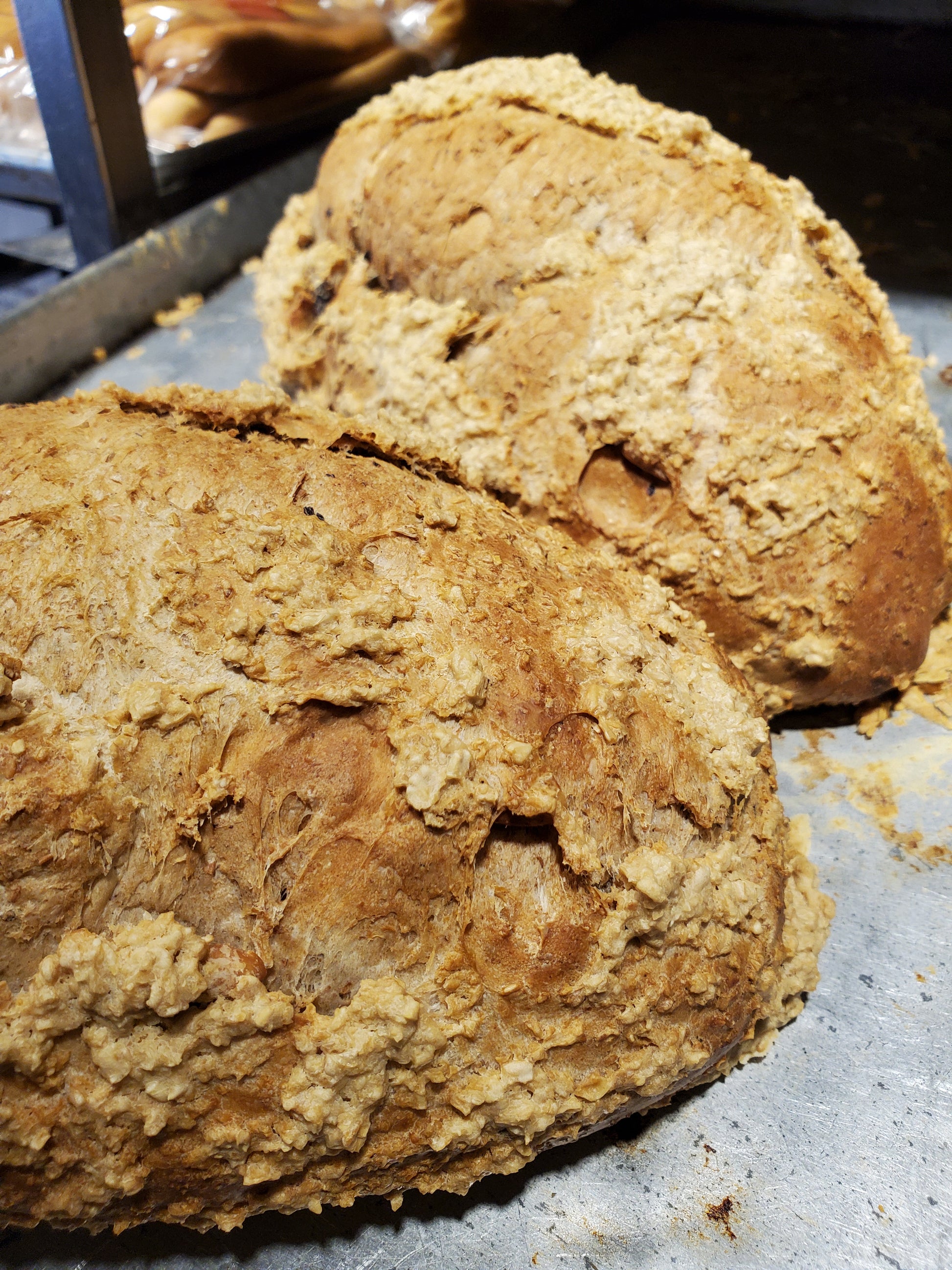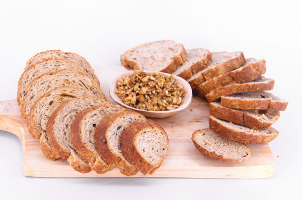 Pan integral con trozos de granola y frutos secos, ligeramente dulce y con una textura crujiente que lo hace especial.
